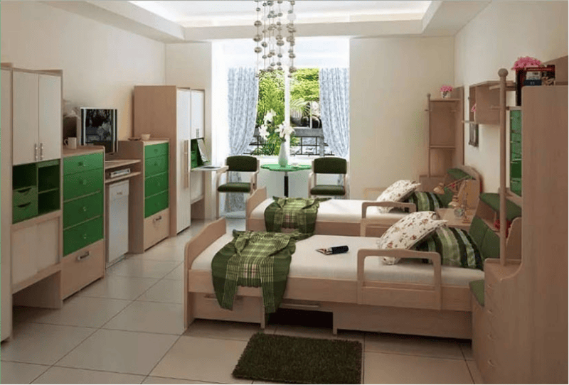 ⊕ 设施配置:上海浦东新区华康恒裕滨海养老院总占地3300平米,绿化率达40%,建筑面积2760平米,由三幢联体欧式建筑组成,造型别致典雅,充满异域风情。三幢楼通过采光优越的连廊连接,公共走廊宽敞明亮,配备电梯方便长者上下楼,解决出行不便问题。房型包含单人房、二人房、三人房和四人房,可灵活适配不同居住需求,每间房配备独立卫生间、全套家具、电风扇、空调、电视机、电话及无线呼叫服务系统,保障日常起居与安全。配套餐厅、多功能活动厅、阅览室、棋牌室、休闲活动大厅、室内外健身场地等,满足长者饮食、文娱、运动等多元需求。