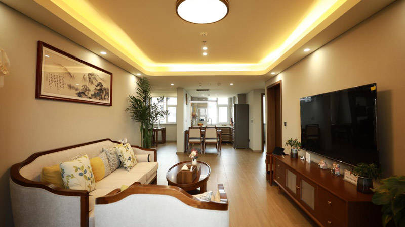北京东燕郊方舟养老院的两栋康养公寓分别命名为平安楼、喜乐楼,寓意着祝愿每一位入住长者平安喜乐、安享晚年,公寓整体按照酒店式标准打造,基础精装修,格调温馨舒适,贴合长者居住习惯。每层拥有独立的多功能大堂、超宽走廊,方便长者轮椅通行,避免拥挤磕碰;公寓采用集中供暖,房间均配备冷暖空调、新风系统,可根据季节变化调节温度,保持室内空气流通,为长者营造舒适的居住环境。房间标配60寸LED平板电视、冰箱、多功能一键呼头、防护型卫生间,细节配置齐全,其中防护型卫生间配备扶手、防滑地面、助浴凳等适老化设施,最大限度保障长者如厕、洗浴安全,一键呼头可快速联系护理人员,及时解决长者各类需求。
