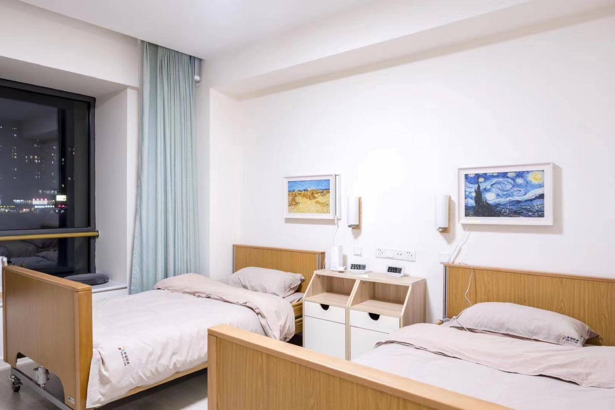 北京幸福颐养护理院建筑面积达24000平米,规模宏大、配套完善,采用国际化医养建筑设计,充分融合日本和荷兰先进的医养与适老设计理念,突破传统医院和养老机构的冰冷氛围,营造一个如家般温暖、舒适的居住环境,缓解长者对医院、养老院的抵触情绪。院内配备智慧化适老家居系统,包含小米定制智能家居系统、智能监测系统、智能照护系统、智能安防系统等,让老人的生活更加安全、便捷,如智能监测系统可实时监测长者生命体征,异常情况及时报警,智能安防系统保障长者居住安全。同时注重无障碍适老细节设计,防眩晕灯光、防滑地板、适老扶手、助浴凳、电动护理床、紧急求助按钮、急救宝等设计,全方位满足老人日常生活需求、安全需求,细节之处尽显人文关怀。居室内设紧急求助按钮,公共区域设急救宝,可即时发送定位及警报;院内配备除颤仪、无创呼吸机、电动吸引器、心电监护仪、心电图机等医疗急救设备,可快速应对长者突发疾病;每床设医疗设备带(氧气管道和负压吸引装置),保障长者日常医疗护理需求。此外,院内设有1000余平米的专业康复中心,划分五大功能分区、三大康复系统,配置专业康复设备,为长者提供专业康复训练服务。